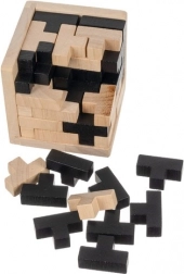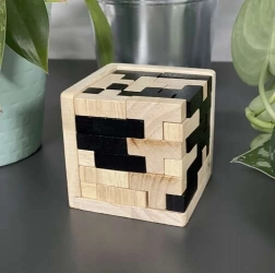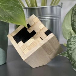 Dieses stilvolle Holzpuzzle in Natur- und Schwarzoptik ist ideal zum mentalen Training und als Design-Accessoire für den Tisch. Das Set enthält sorgfältig verarbeitete, ungiftige Teile in „T“-Form, die bei richtiger Anordnung einen kompakten farblich kombinierten Würfel ergeben. Dank der präzisen Fertigung ist das Zusammensetzen fließend, angenehm und ausgesprochen fesselnd.