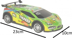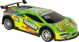 Starten Sie ins Rennen mit dem grünen RC-Sportwagen, der Einsteiger und kleine Autofans begeistert. Gummireifen sorgen für guten Grip und schonen den Boden, daher geeignet für das Spielen im Innenbereich und auf dem Gehweg. LED-Lichter unterstreichen den dynamischen Look und wirken besonders in der Dämmerung attraktiv.