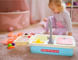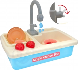 Kinder-Küchenspüle mit fließendem Wasser und Zubehör – blau