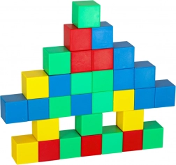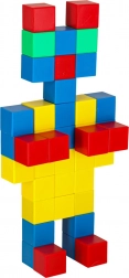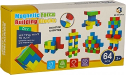Das Set enthält 64 magnetische Klötze, die sich durch Magnete verbinden und es ermöglichen, unterschiedliche Konstruktionen zu erstellen. Jeder Klotz hat die Form eines Quadrats, was es dem Kind ermöglicht, frei einfache oder komplexere Bauwerke zu erschaffen. Die Klötze sind in intensiven Farben: grün, gelb, rot und blau, die die Aufmerksamkeit auf sich ziehen und zur Erstellung bunter Projekte einladen.