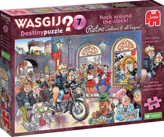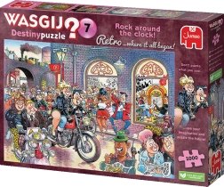 Puzzle WASGIJ Destiny ist ein innovatives Konzept, das eine völlig andere Sichtweise auf das Puzzeln bringt. Anstatt nach Vorlage zu puzzeln, entdecken Sie, was in ein paar Jahren mit den Charakteren geschehen könnte. Dieses spezielle Werk aus der Destiny-Edition zeigt eine Szene aus der rockigen Vergangenheit, aber Ihre Aufgabe ist es, sich vorzustellen und zusammenzusetzen, was die Zukunft bringen mag.