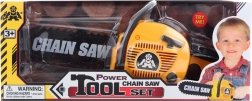 Diese Kinder Kunststoff-Motorsäge ist ein ideales Spielzeug für alle kleinen Heimwerker ab 3 Jahren. Sie ist für eine sichere Interaktion konzipiert, bei der die Kette manuell durch Drücken eines Knopfes bewegt wird, was die Feinmotorik fördert.