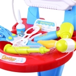 Stabiler Ärztetrolley mit Ablageflächen und Rollen ermöglicht Kindern, die Instrumente im ganzen Zimmer zu transportieren und alles griffbereit zu haben.