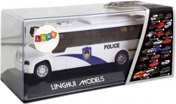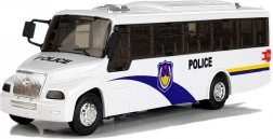 Der Polizeibus gibt Kindern die Möglichkeit, Fahrer zu sein und Freunde zu einem Polizeieinsatz oder Training mitzunehmen. Der Bus ist aus Kunststoff gefertigt und mit Gummireifen ausgestattet. Das detailreiche Modell des Innenraums ähnelt echten Fahrzeugen, während blaue Muster und der Schriftzug POLICE an den Seiten dem Auto ein authentisches Aussehen verleihen.