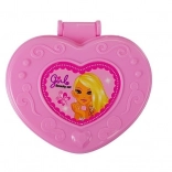 Dieses rosa Schönheitsset enthält Kosmetikartikel, die speziell für Kinder entworfen wurden, alles in der Form eines anziehenden Herzens.