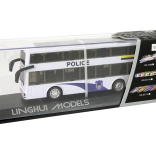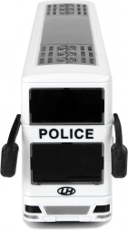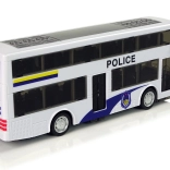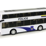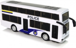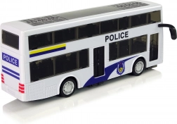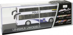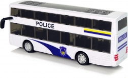 Bereiten Sie kleinen Action-Fans Freude mit einem stylischen Doppeldecker-Polizeibus. Dank des spannenden Pull-Back-Antriebs fährt der Bus nach dem Aufziehen von selbst los, während Licht- und Soundeffekte eine realistische Atmosphäre schaffen. Das weiße Design mit blauen Details, POLICE-Schriftzug und Emblemen wirkt wie ein echtes Einsatzfahrzeug.