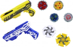 Dieses dynamische Set bringt einen aufregenden Geschicklichkeitswettkampf: Laden Sie die Scheibe in den Launcher, zielen Sie und lassen Sie sie in die Arena starten. Metallscheiben drehen sich, stoßen zusammen und kämpfen um den Sieg – es gewinnt, wer sich am längsten in Bewegung hält. Lichteffekte verstärken das visuelle Erlebnis und ziehen bei jedem Spiel die Aufmerksamkeit auf sich.