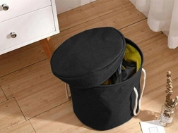 Der schwarze Korb ist aus wasserdichtem Material gefertigt, wodurch er den Inhalt vor Verschütten schützt.