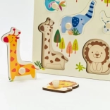 Dieses Holzpuzzle ist die ideale Wahl für Kinder, die beginnen, die Welt der Tiere zu entdecken. Dank knaufförmiger Griffe für einfaches Greifen und stabiler Verarbeitung ist es ein großartiges Werkzeug zur Entwicklung motorischer und Unterscheidungsfähigkeiten bei Kindern ab 18 Monaten.