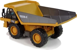 Dieses detailreiche Baufahrzeug im Spielzeugmaßstab kombiniert gelbes Design mit schwarzen Akzenten und realistische Funktionen – von Fahrmanövern vorwärts/rückwärts/links/rechts bis zum Anheben und Senken der Mulde direkt über die Fernsteuerung. Dank 2,4‑GHz‑Funktechnologie ist die Steuerung flüssig und störungsfrei, Motorgeräusche und Rückfahrwarnung sind ebenfalls an Bord.