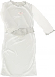 Kleiden Sie Ihr Kind in ein zauberhaftes Engelchen-Kostüm und lassen Sie es bei jedem Anlass glänzen. Es besteht aus einem langen weißen Rock mit Pailletten, einem silbernen Gürtel, einem Stirnband mit Heiligenschein und engelhaften Flügeln. Das Kostüm besteht aus Polyester, was gute Beweglichkeit während Aufführungen oder Spielens garantiert.