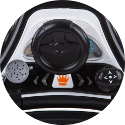 Der ergonomische Sitz mit 3 Höhenstufen wächst mit dem Kind mit, und die um 360° drehbaren Vorderräder erleichtern das Manövrieren. Das abnehmbare Formel-Armaturenbrett mit Tasten, Geräuschen und Lichtern fördert Sehen, Hören und Koordination. Der Lauflernwagen besteht aus hochwertigen und sicheren Kunststoffen, lässt sich leicht zusammenklappen und verstauen und erfüllt die Norm EN 1273.
