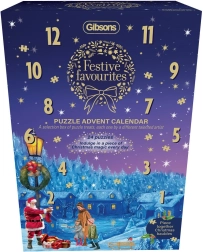 Mit dem Gibsons Adventskalender genießen Sie jeden Tag bis Weihnachten eine besondere Überraschung. Er enthält 24 Umriss-Puzzle-Motive, die Sie zusammenstellen und dank des mitgelieferten Klebers und Bands als hängende Weihnachtsdekorationen verwenden können.