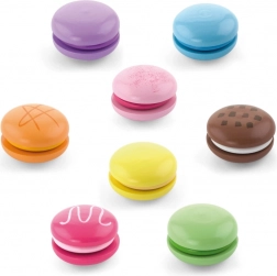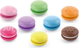 Das Set enthält 8 realistisch gestaltete Makronen in sanften Pastellfarben. Jede Makrone besteht aus zwei Teilen, die durch Klett verbunden sind, sodass Kinder sie leicht „halbieren“ und wieder zusammensetzen können – so trainieren sie den Griff, die Hand-Auge-Koordination und entdecken Farbkombinationen.