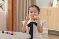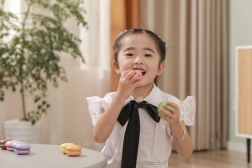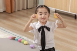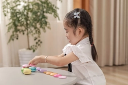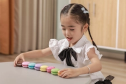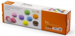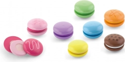 Die zwei Hälften jeder Makrone sind mit einem Klettverschluss verbunden – Kinder können sie trennen und wieder zusammensetzen, neue „Geschmacksrichtungen“ kreieren und dabei Fingerfertigkeit sowie Koordination trainieren.