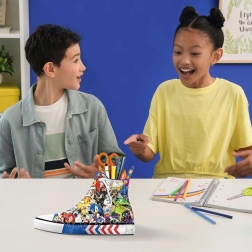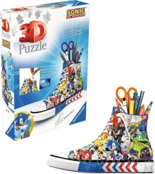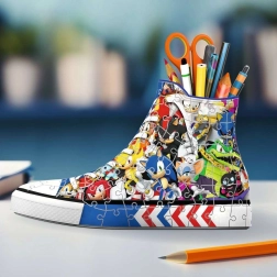 Entdecken Sie das Ravensburger 3D Puzzle in Form eines Sneakers mit dem Motiv von Igel Sonic, das als origineller Stifte-, Buntstift- oder Pinselhalter dienen kann. Das Puzzle wird durch spezielle gebogene und flexible Teile ermöglicht, die genau an ihren Platz passen und so eine starke und stabile Konstruktion ohne Klebstoff schaffen.