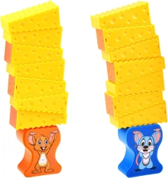 Das Stapelspiel hebt die Geschicklichkeit von Hand und Auge auf ein neues Niveau. Käsewürfel und Mäusefiguren bilden eine dynamische Herausforderung.