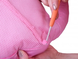 Das Kissen in Form einer Katze ermöglicht kreatives Schaffen ohne Nadel und Faden. Verwenden Sie einfach den mitgelieferten Haken, um Garn durch die Netzstruktur zu fädeln und so das Fell Ihres Kuscheltiers zu schaffen. Gesicht, Pfoten und Ohren der Katze werden durch das Fädeln des Garns durch das Netz und die Filzöffnungen befestigt. Das fertige Kissen schmückt jedes Kinderzimmer und ist dank Ihrer eigenen Kreation einzigartig.