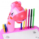 Der Giraffen-Projektor-Zeichentisch ist ideal für kleine Nachwuchskünstler. Der Projektor wirft Bilder auf die Zeichenfläche, die das Kind leicht abpausen und ausmalen kann. Dank der kompakten Maße lässt sich die Platte auf dem Tisch verwenden oder mit den beiliegenden Beinchen als kleiner Kinder-Zeichentisch aufstellen.