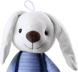 Das niedliche Plüschhäschen mit einer Höhe von 60 cm ist aus außergewöhnlich weichem und angenehmem Material gefertigt. Es hat Kunststoffaugen, ein aufgesticktes Näschen und ein charmantes Lächeln. Gekleidet in ein gestreiftes T-Shirt und eine Latzhose wird es zum idealen Begleiter zum Spielen, Vorlesen und Kuscheln vor dem Schlafengehen.