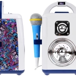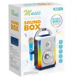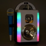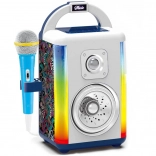 Tragbarer Musiklautsprecher mit Mikrofon ist das perfekte Geschenk für jeden kleinen DJ. Dieser bunte Lautsprecher mit LED-Lichtern, Mikrofon und einem praktischen Griff bietet alles Notwendige für eine tolle Party jederzeit und überall.