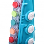 Dieses farbenfrohe Kindersaxofon fördert Rhythmusgefühl, musikalische Wahrnehmung und Motorik. Nach dem Einschalten begrüßt eine fröhliche Melodie, und beleuchtete Elemente gehen an. Kinder können fertige Stücke hören oder eigene Melodien spielen – durch Blasen in das Mundstück und Drücken der Tasten wie bei einem echten Instrument.