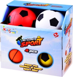 Drei Bälle im Fußballstil (weiß, gelb, rot) und ein Basketball bringen Abwechslung ins Spiel und Training.