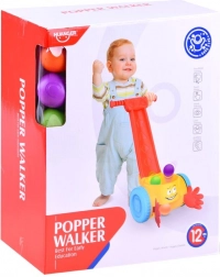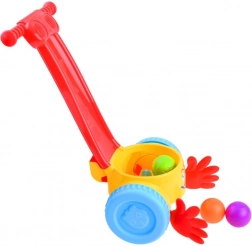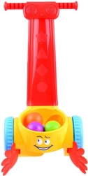 Das interaktive Lauflernspielzeug mit lächelndem „Gesicht“ motiviert Kinder zur Bewegung und zum Erlernen des Gleichgewichts. Sobald das Kind das Spielzeug schiebt, ertönen fröhliche Melodien und es wechseln sich Geräusche von Motor, Flugzeug und Lokomotive ab. Vorn öffnet sich ein Bereich mit „Pfoten“, die während der Fahrt bunte Bälle einsammeln und die Hand-Auge-Koordination fördern.