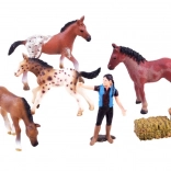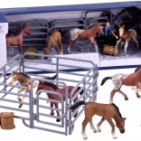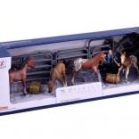 Im Set enthalten sind eine Bäuerin – die Hüterin der Herde, vier niedliche Fohlen in unterschiedlichen Fellfarben sowie Elemente für einen Zaun, mit denen ein sicherer Bereich für die Pferdchen gestaltet werden kann. Ebenfalls dabei sind ein Sack Hafer und ein Heuballen – alles für eine authentische Bauernhof-Atmosphäre.