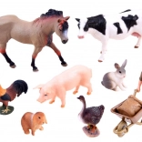 Lieferumfang: krowa (Kuh), koń (Pferd), kogut (Hahn), świnka (Ferkel), zajączek (Häschen), królik (Kaninchen), gęś (Gans) und Bauer mit Schubkarre. Jede Figur ist handbemalt und bereit für unendlich viele Szenen und Geschichten.