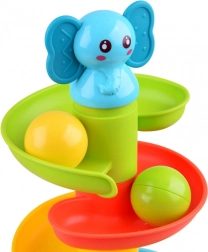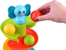 Bunte Kugelbahn mit kleinem Elefanten – Spiralpyramide für Kinder