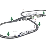 Zum Set gehören eine Lokomotive und Schienen mit einer Gesamtlänge von 366 cm, die das Erstellen verschiedener Strecken nach Belieben ermöglichen.