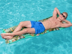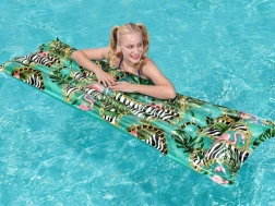 Diese stilvolle aufblasbare Matratze mit tropischem Druck ist ideal zum Relaxen in Ihrem Pool oder im Urlaub. Dank robustem PVC-Material und durchdachter Konstruktion mit mehreren Luftkammern bietet sie hervorragenden Auftrieb, Komfort und eine lange Lebensdauer.