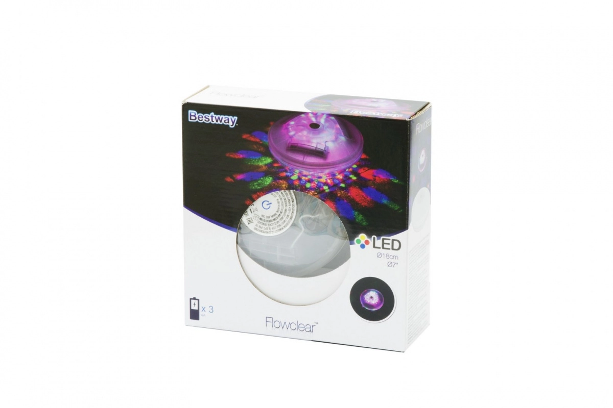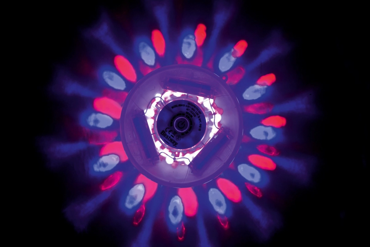 Das schwimmende LED-Poollicht BESTWAY ist ein stilvolles und praktisches Accessoire für abendliches Schwimmen, Gartenpartys und romantische Momente. Ohne Kabel und aufwendige Installation sorgt es für eine effektvolle Beleuchtung der Wasseroberfläche in 4 Farben (Rot, Blau, Gelb, Grün) und mit 7 dynamischen Modi. Einfach Batterien einlegen, auf die Wasseroberfläche legen und die Taste drücken.
