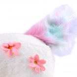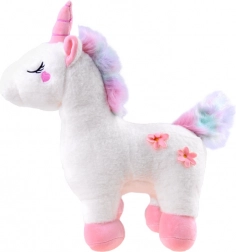 Das rosafarbene Horn, die regenbogenfarbene Mähne und Blümchen an der Seite verleihen dem Spielzeug einen magischen Look und fördern die Fantasie.