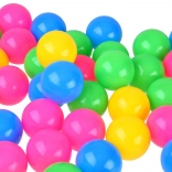 Dieses Set enthält 100 bunte Kugeln, die perfekt für Kinderspielbereiche sind. Die Kugeln haben einen Durchmesser von 6,5 cm und sind in vier leuchtenden Farben erhältlich: rosa, gelb, grün und blau, was ihre Attraktivität für Kinder garantiert und den Spaß fördert.