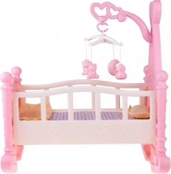 Das vollständige Spielset enthält eine Wiege und notwendiges Zubehör für perfekte Puppenpflege.