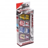 Dieses tolle Set bietet vier robuste und detailreich gestaltete Rennautos, die man einfach zurückziehen und loslassen muss. Dank der kompakten Größe von 7 cm eignen sie sich perfekt für Rennen zu Hause, Hindernisstrecken und für unterwegs. Die Metallausführung sorgt für lange Haltbarkeit und kompromisslosen Spielspaß.