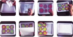 Der gesamte Prozess beinhaltet das Mischen der Farben, das Auftragen auf die Wasseroberfläche mit einer Pipette und die Mustererstellung mit den Nadeln. Am Ende übertragen Sie das entstandene Muster auf Papier und lassen es trocknen. Dieser Prozess ermöglicht die Erstellung einzigartiger Bilder, die nicht nur schön, sondern auch beruhigend sind.