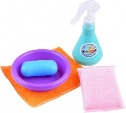Enthält einen Mopp, einen Besen, eine Schaufel und eine Sprühflasche, die Kindern vielfältige Möglichkeiten für das Putzspiel bieten.