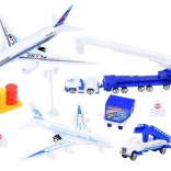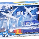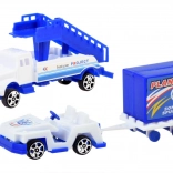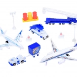 Enthält ein Servicefahrzeug, ein Fahrzeug mit Zugangstreppen und ein Gepäckfahrzeug für eine vollständige Simulation der Flughafenumgebung.