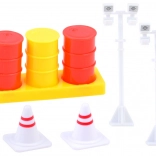 Ein Anhänger mit ausziehbarer Leiter und realistisches Zubehör wie Lichter und Kegel für ein bereichertes Spielerlebnis.