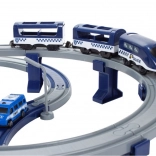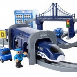 Das reichhaltig ausgestattete Set, bestehend aus 92 Elementen, ermöglicht es Ihnen, eine Zugstrecke mit Brücken, Viadukten und Tunneln zu bauen. Entlang der Strecke können Verkehrszeichen sowie eine Polizeistation mit Hubschrauberlandeplatz platziert werden.