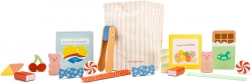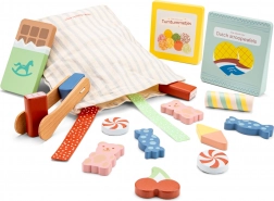 Dieses Holz-Süßigkeiten-Set begeistert alle kleinen Fans von Kaufmanns- oder Caféspielen. Es bietet eine bunte Auswahl an Holzsüßigkeiten – von Schokoriegel bis Gummibärchen – sorgfältig gestaltet, um wie echte Leckereien auszusehen. Dazu gehören eine praktische Baumwolltasche zur Aufbewahrung und eine Holzzange für spielerisches Servieren.
