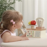 Kinder eignen sich spielerisch Mathematik-Grundlagen an – sie legen ihre „Einkäufe“ auf die Schale, beobachten den Zeiger und zählen am Zahlenpanel.
