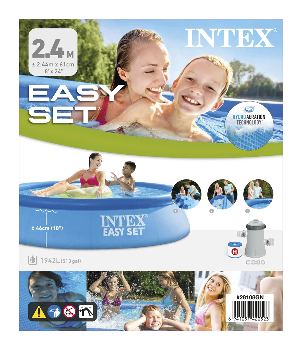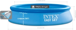 Zum Set gehört eine Filterpumpe (1.250 l/h), die das Wasser sauber und klar hält. Wählen Sie einfach eine ebene Fläche, blasen Sie den oberen Ring auf und füllen Sie Wasser ein – die Konstruktion formt sich von selbst. Die zertifizierte Intex Qualität garantiert Zuverlässigkeit und eine lange Lebensdauer.