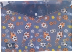 Diese robuste Tasche mit Druckknopf eignet sich perfekt zum Transport und zur Archivierung von Schulheften, losen Blättern und wichtigen Unterlagen. Das Maß 35,8 × 26 cm nimmt das A4-Format inklusive Hüllen zuverlässig auf. Die sportlichen Ballmotive verleihen Ihren Dokumenten Stil und Übersicht.