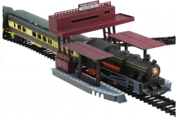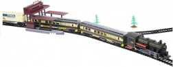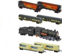 - Lieferumfang: Lokomotive, 6 Waggons, ca. 10 m Schienen, 4 Bäume