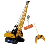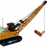 Dieser große Baukran begeistert alle kleinen Technikfans. Mit der mitgelieferten Fernbedienung fährt er mühelos vorwärts/rückwärts und seitwärts, hebt und senkt Lasten und dreht die Kabine. Für ein authentisches Erlebnis sorgen LED-Lichter in der Kabine und an den Ketten sowie Startgeräusche der Maschine.
