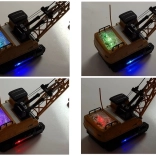 Fahren Sie auf Ketten, heben Sie Lasten mit dem Haken und drehen Sie die Kabine. Die Fernbedienung ermöglicht intuitives Steuern in alle Richtungen, inklusive Heben des Auslegers.